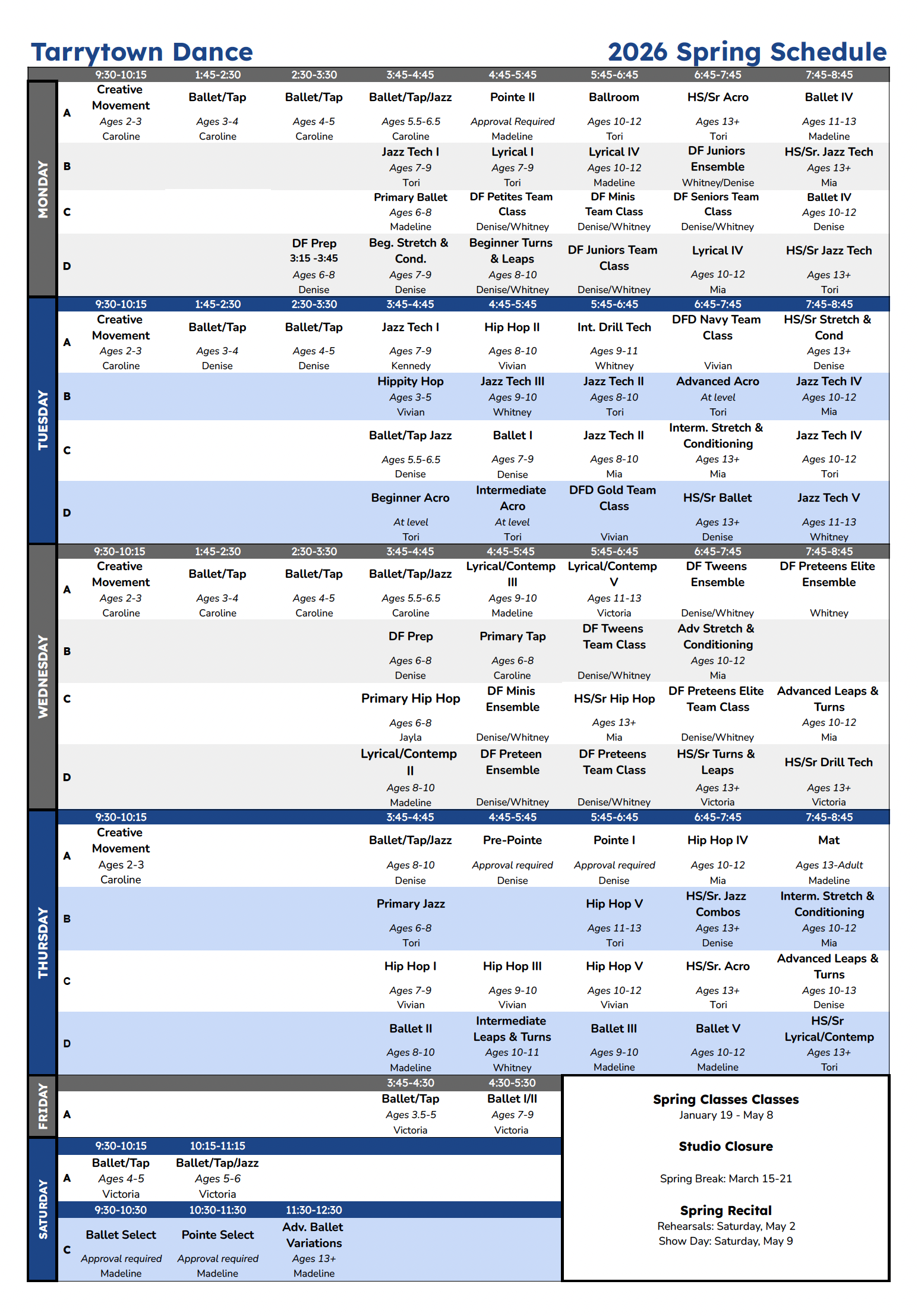 We are excited to see you this Spring!